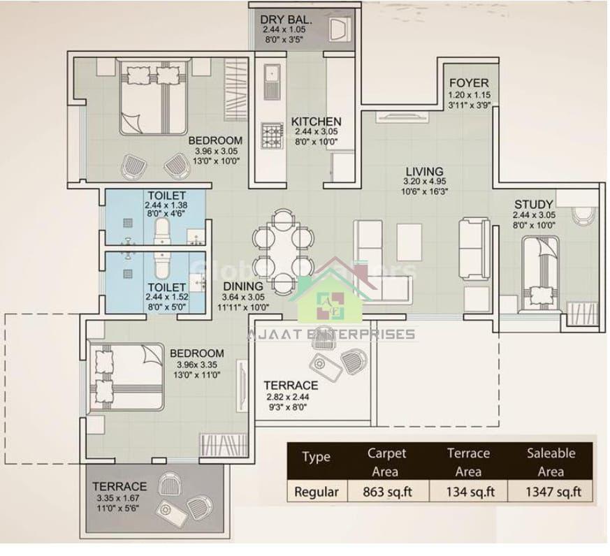 - Type: 2.5 BHK